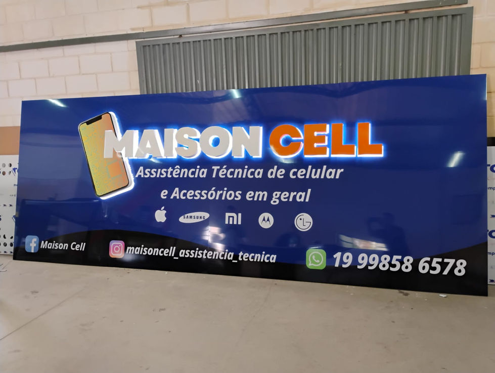 Fachada de ACM, com letra caixa Galvanizada, Modelo retro iluminação, com pintura automotiva que promove um acabamento mais fino e mais duradouro.